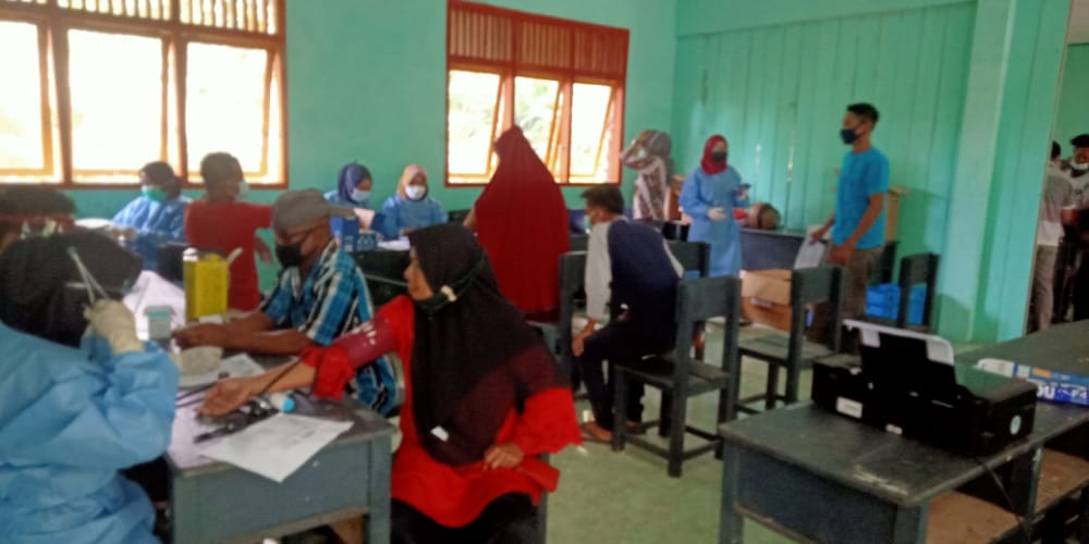 KADER-KADER DESA GOTONG ROYONG MEMPERSIAPKAN LOKASI TEMPAT VAKSINASI MASAL MASYARAKAT DESA TG.SETELUNGBAGI